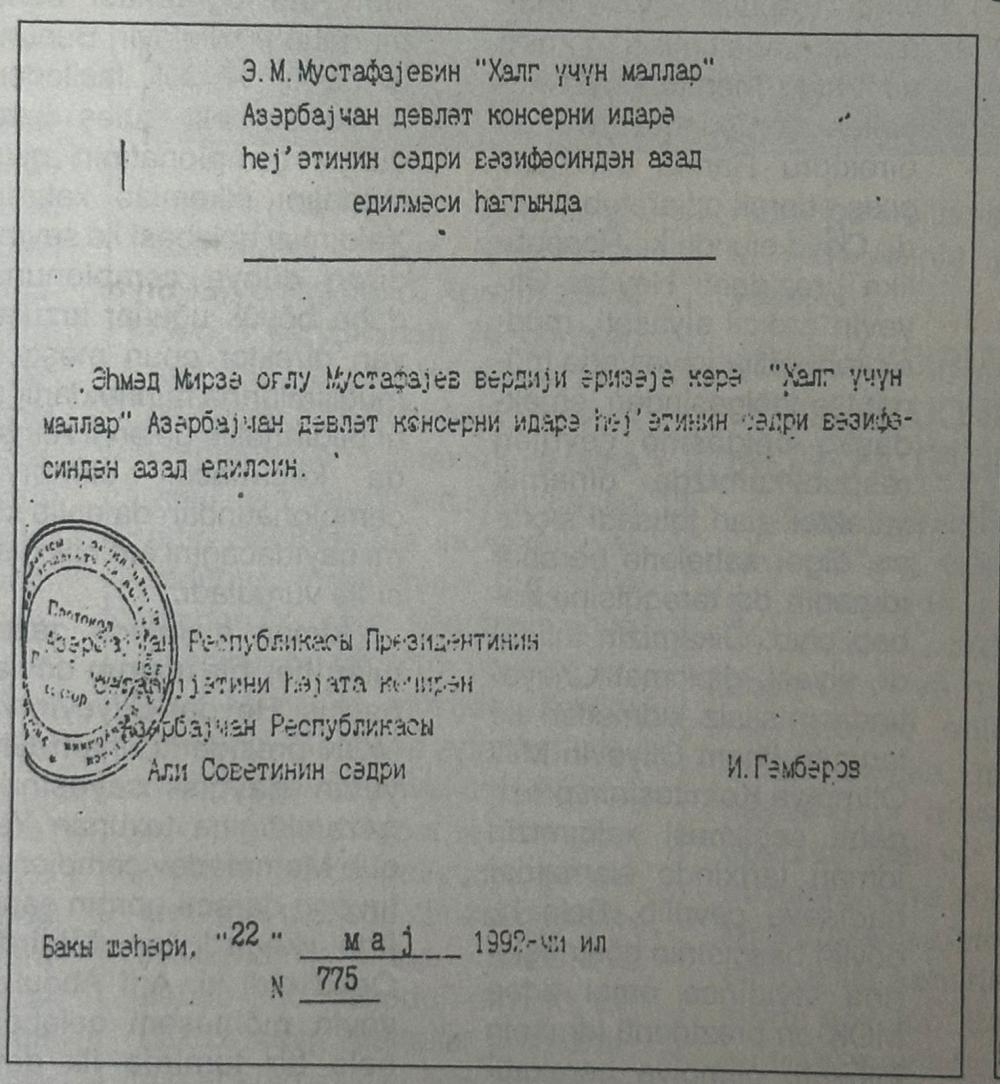 2 milyon dollar və 28 kq qızıla dəyişdirilən 775 nömrəli sərəncam