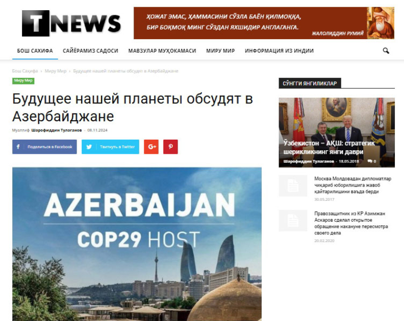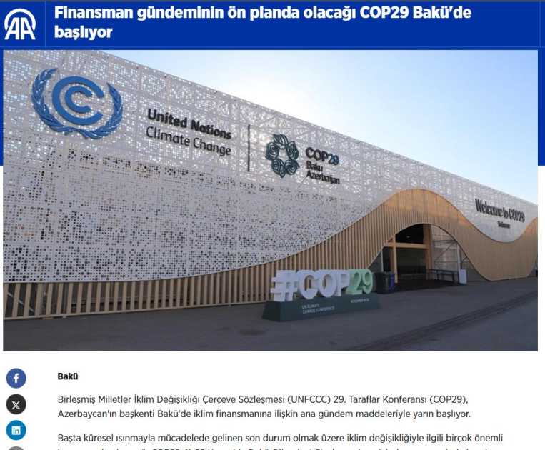 “Kazinform” agentliyi COP29-dan yazıb