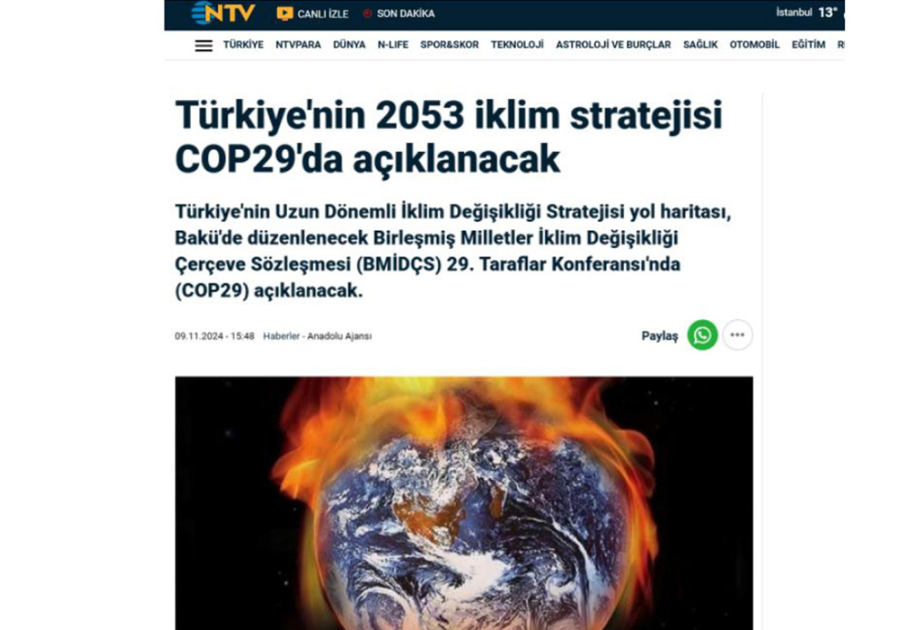 Türkiyə COP29-da 2053-cü ilə qədər ətraf mühit hədəflərini açıqlayacaq