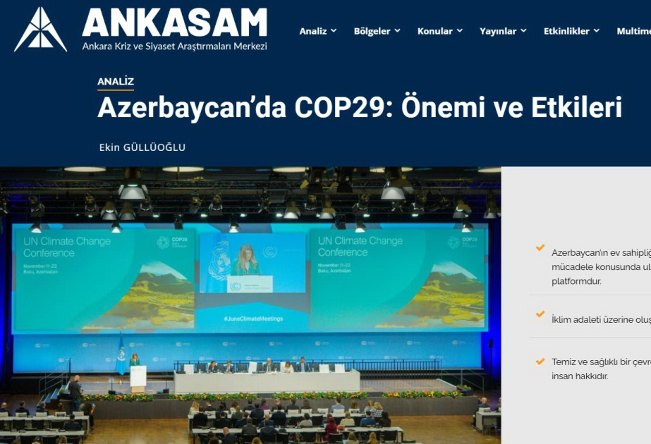 Türkiyəli ekspert: COP29 iqlim böhranı ilə mübarizədə yeni mərhələ olacaq