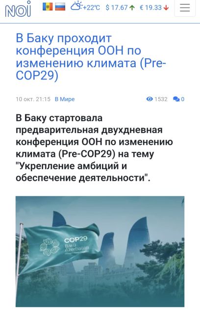 Moldovanın xəbər portalı Pre-COP29 konfransına geniş yer ayırıb