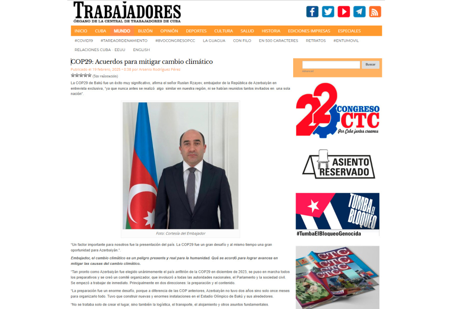 Kuba mediası: COP29 ciddi nəticələrlə yadda qaldı