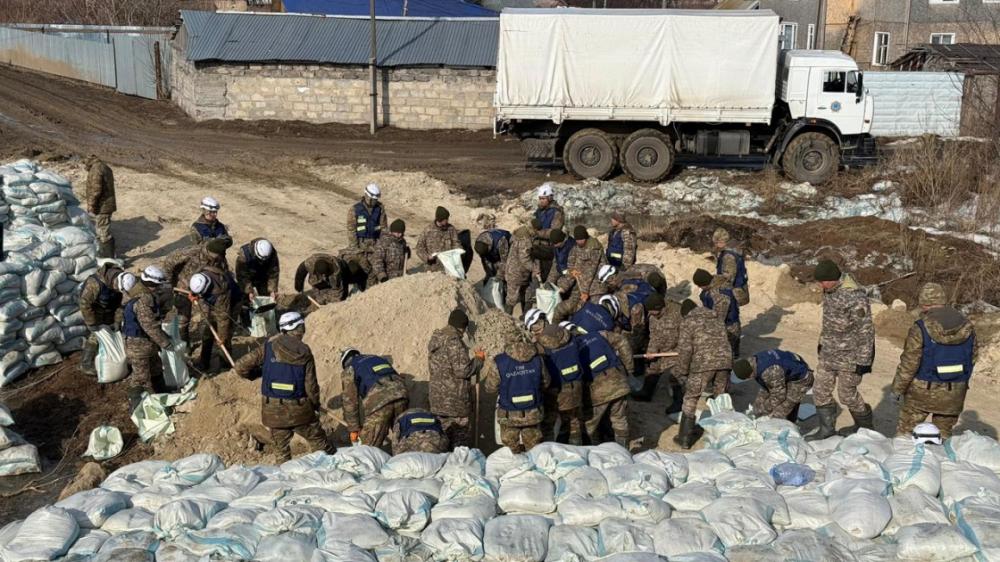 Qazaxıstanda FHN hərbçiləri daşqın təhlükəsinə qarşı tədbirlər görür