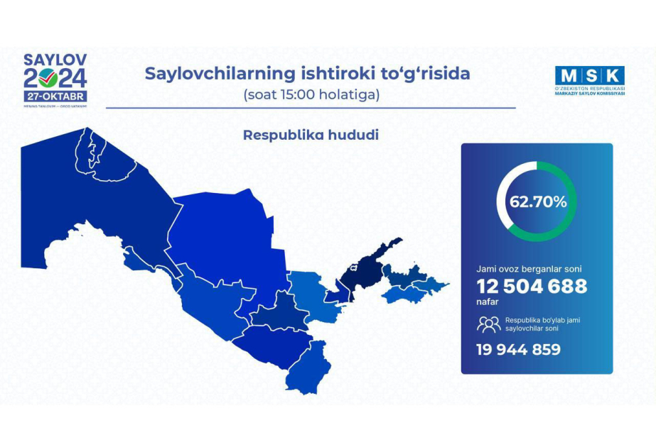 Özbəkistanda seçkilər: səsvermə fəallığı 62,7 faiz təşkil edir