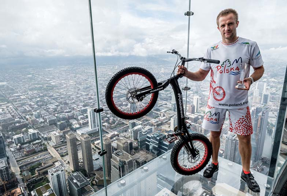 Polşalı pilləkənlərlə velosipedlə tullanmaq üzrə dünya rekordu qırıb