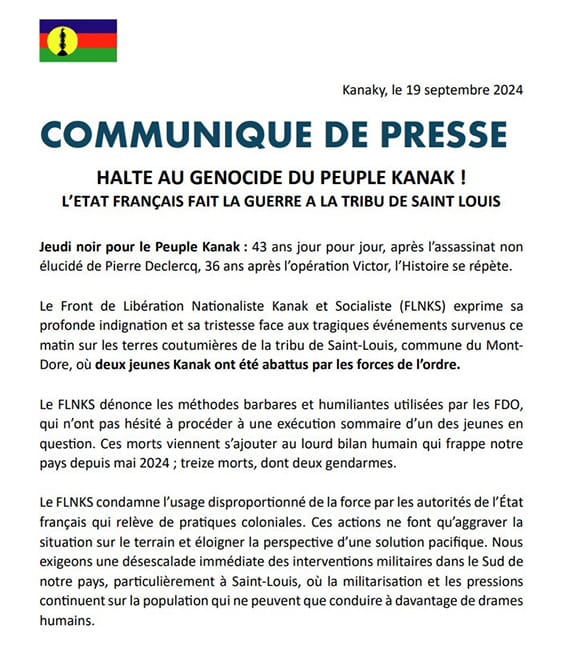 Yeni Kaledoniyanın Azadlıq Cəbhəsi Fransaya etiraz bəyanatı yayıb