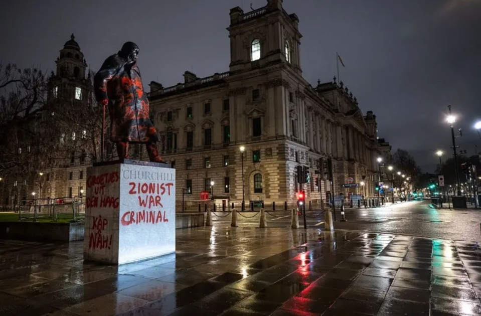Londonda Çörçillin heykəlinə şüarlar yazan şəxs saxlanılıb