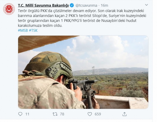 Daha üç terrorçu Türkiyə təhlükəsizlik qüvvələrinə təslim olub
