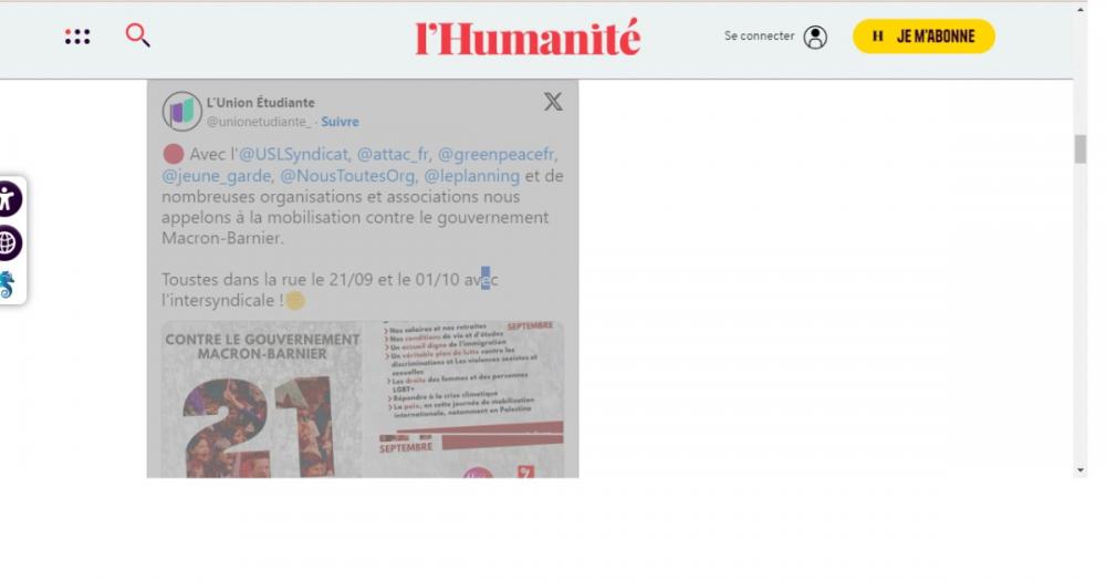 “Parlament seçkilərində solçuların qələbəsinə baxmayaraq, E.Makron ifrat sağçı, sosial tədbirlərə qarşı, antimiqrant, keçmişdə homofob olan Marin Lö Penin razılığı ilə Mişel Barnyeni baş nazir təyin etdi”, - deyə təşkilatçılar bildiriblər. Onlar xalqı demokratiyanın tapdalanmasına qarşı təcili tədbirlər görməyə çağırıblar.