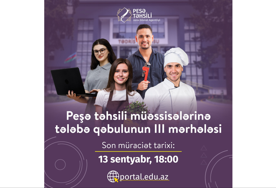Peşə təhsili müəssisələrinə tələbə qəbulunun III mərhələsinə start verildi