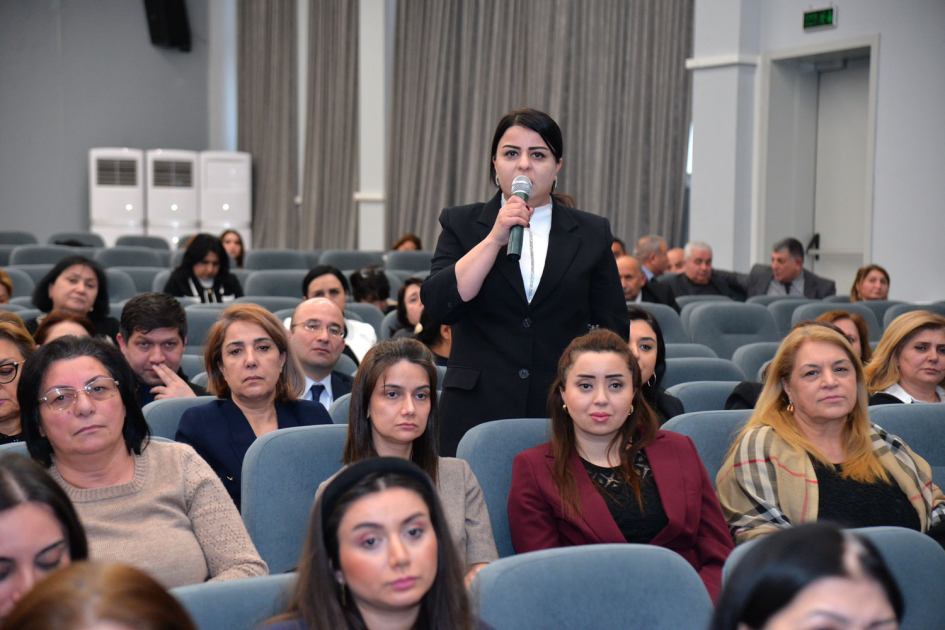 Daha sonra məktəb direktorları ilə bir sıra aktual məsələlər ətrafında fikir mübadiləsi aparılıb, onları maraqlandıran suallara cavab verilib, müvafiq təklif və tövsiyələr səsləndirilib.