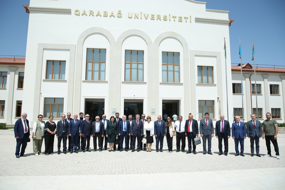 Sonda Qarabağ Universitetinin fonunda xatirə şəkli çəkdirilib.