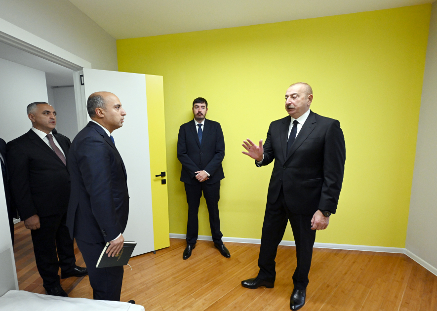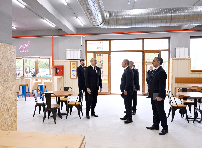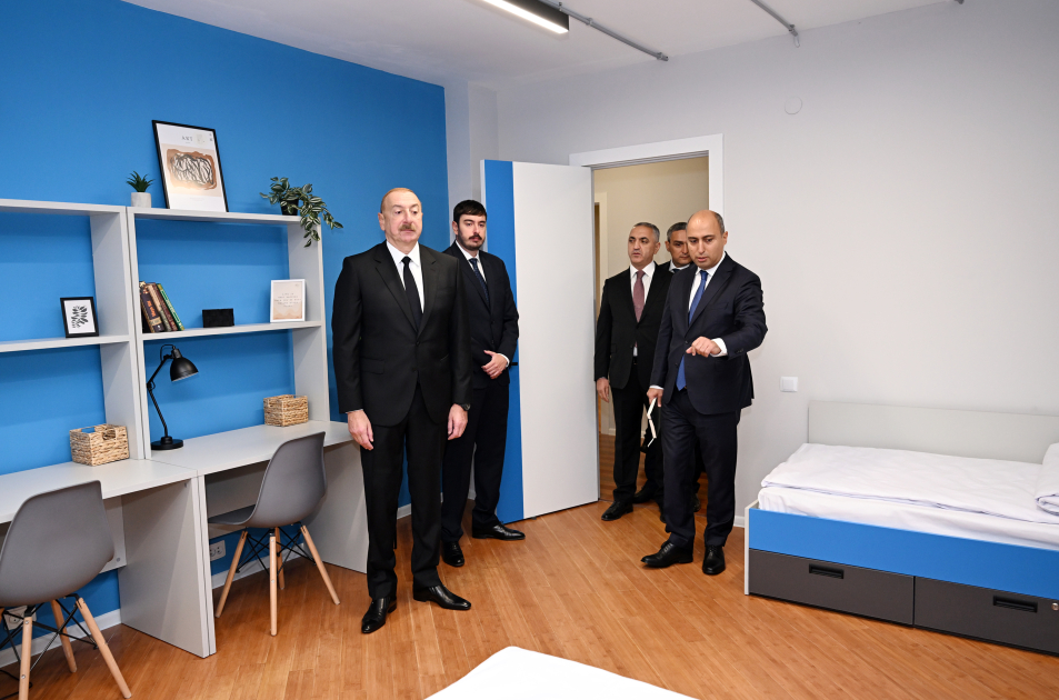 Prezident İlham Əliyev tələbə yataqxanasında yaradılan şəraitlə tanış oldu. Tələbələrin yaşaması üçün nəzərdə tutulan yataqxana mənzil tipli 5 binadan ibarətdir. Binaların hamısı müasir standartlar səviyyəsində əsaslı təmir olunub. Bütün mənzillər müvafiq avadanlıqlarla təchiz edilib, yaşayış şərtləri müasir kampus konseptinə uyğunlaşdırılıb. Yataqxanada istirahət guşələri, yeməkxana və idman sahəsi də fəaliyyət göstərəcək. Ümumilikdə, 1154 tələbənin yataqxanada ödənişsiz əsaslarla məskunlaşması təmin edilib.