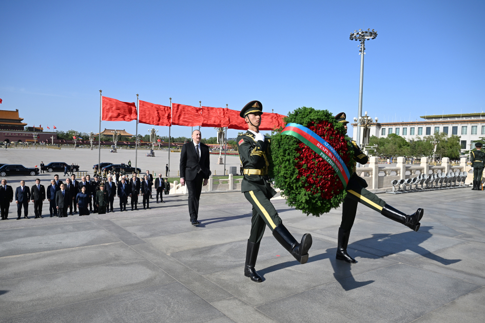 Azərbaycan Respublikasının Prezidenti İlham Əliyev aprelin 23-də Pekində Xalq Qəhrəmanları Abidəsini ziyarət edib.