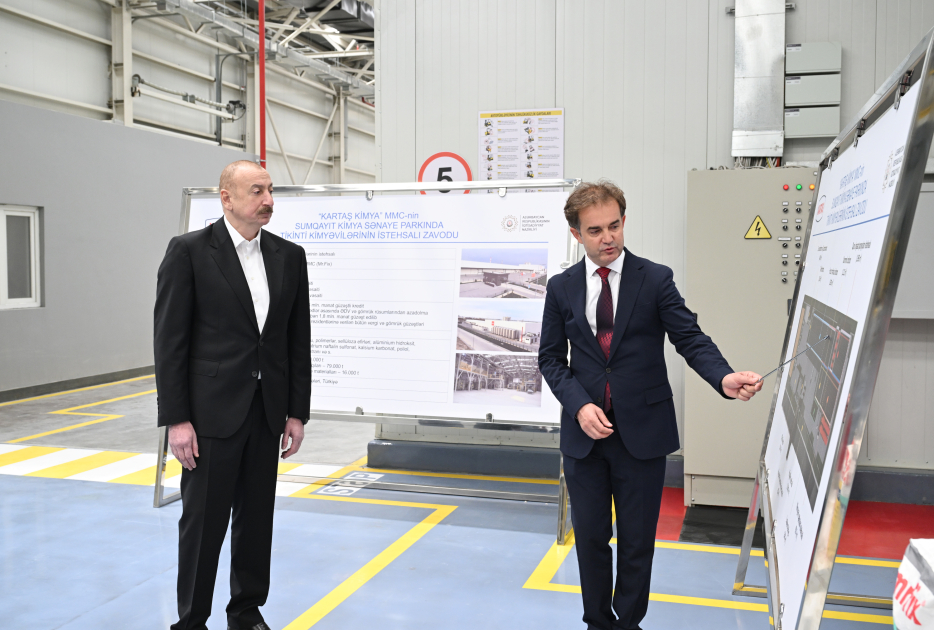 Tikinti kimyəvilərinin istehsalı zavodu ilə bağlı bildirildi ki, “Kartaş Kimya” MMC-yə 2022-ci ilin iyulunda Sumqayıt Kimya Sənaye Parkının rezidenti statusu verilib. Təməli 2023-cü ildə dövlətimizin başçısı tərəfindən qoyulan zavodun tikintisi üçün 2,5 hektar ərazi ayrılıb.