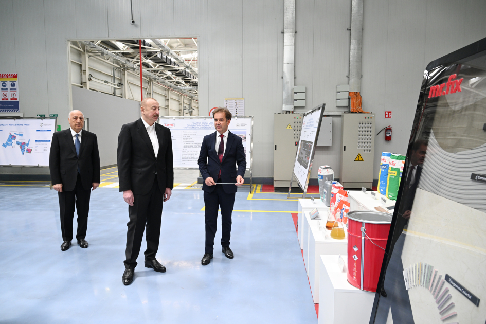 Prezident İlham Əliyev Sumqayıt Kimya Sənaye Parkında bir sıra müəssisələrin açılışını edib