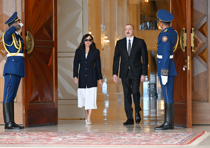 AZƏRTAC xəbər verir ki, hər iki ölkənin Dövlət bayraqlarının dalğalandığı meydanda ali qonağın şərəfinə fəxri qarovul dəstəsi düzülmüşdü.