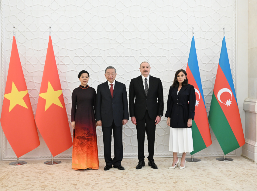 Azərbaycan Prezidenti İlham Əliyev və birinci xanım Mehriban Əliyeva Vyetnam Sosialist Respublikası Kommunist Partiyasının Mərkəzi Komitəsinin Baş katibi To Lamı və xanımı No Fon Lini qarşıladılar.