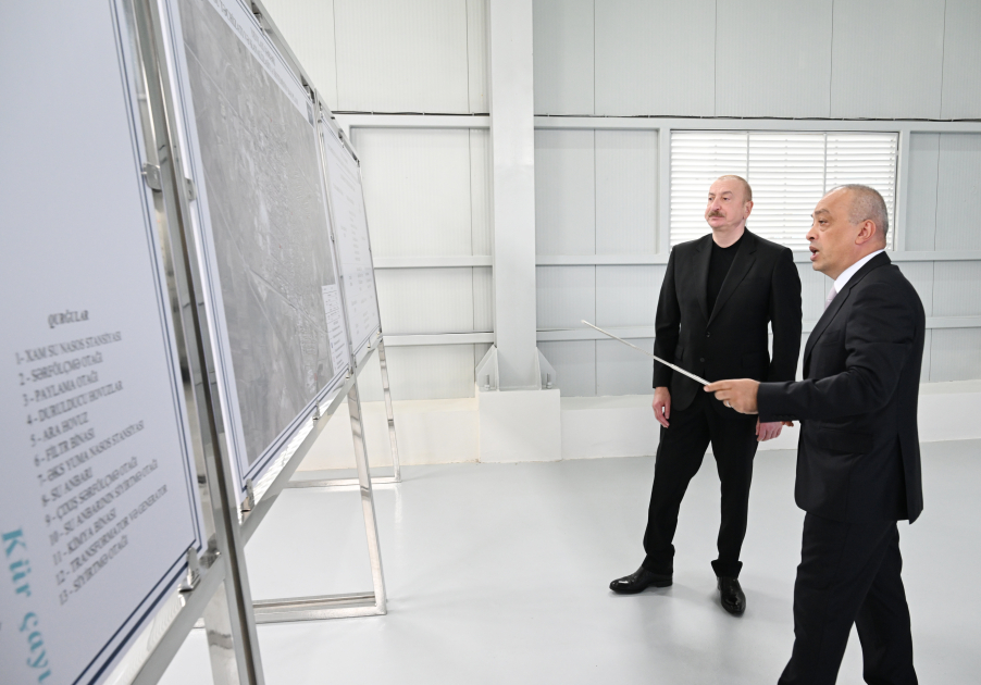 / / Prezident İlham Əliyev Yevlax şəhəri qumsüzgəc texnologiyalı sutəmizləyici qurğunun açılışında iştirak edib