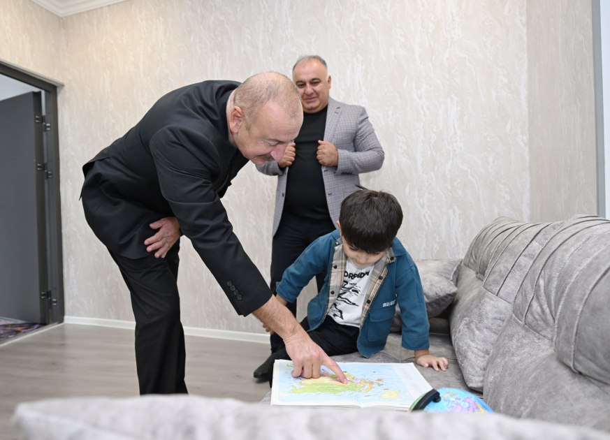 Dövlətimizin başçısı qəsəbəyə köçmüş İslam Dadaşovun evində olub, ailə üzvləri ilə söhbət edib.