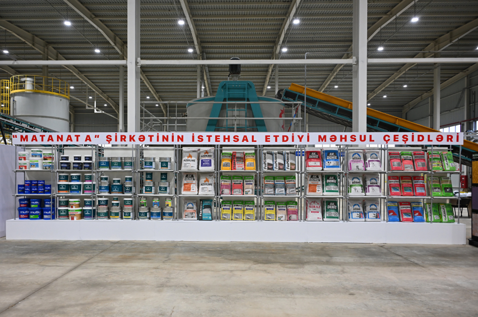 Prezident İlham Əliyev “Matanat-A” şirkətinin müəssisələrində istehsal edilən məhsullarla da tanış oldu. Bildirildi ki, şirkətin zavodlarında 200-dən artıq ticarət markası ilə 3 mindən çox çeşiddə məhsul istehsal edilir. Məhsullar daxili təlabatı ödəməklə yanaşı, “Made in Azerbaijan” brendi ilə Qazaxıstan, Gürcüstan, İraq, Ukrayna, Özbəkistan və digər xarici ölkələrə ixrac olunur.