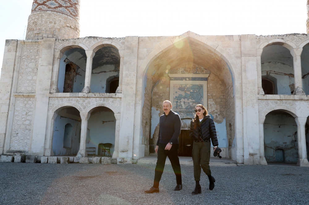 13 февраля Президент Азербайджанской Республики Ильхам Алиев и первая леди Мехрибан Алиева ознакомились с ходом восстановительно-реставрационных работ в Агдамской Джума-мечети, проводимых Фондом Гейдара Алиева.