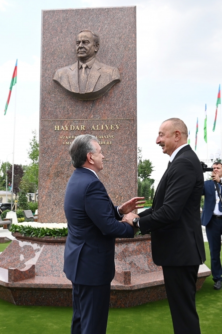 Дорогие друзья, сегодня вспоминая доброе имя общенационального лидера Азербайджана, хочу привести слова великого узбекского поэта Хамида Алимджана: «Человек жив, пока жива память о нем». Убежден, эти слова воспринимаются так и в Узбекистане, и в Азербайджане. Убежден, что этот мемориальный комплекс, посвященный великому человеку и патриоту, созидателю будущего, на которого сегодня равняется молодежь и в Азербайджане, и в Узбекистане, Гейдару Алиевичу Алиеву, станет ярким символом нерушимой дружбы наших стран и народов, почитаемым местом для жителей и гостей нашего родного Узбекистана. Еще раз я хочу выразить искреннюю признательность. К этому визиту мы очень давно готовились. Но были объективные причины, была пандемия. Я хочу сказать, что первый официальный визит после пандемии Ильхам Гейдарович совершает именно в Узбекистан. Это очень символично. Я еще раз хочу сказать: «Добро пожаловать в Узбекистан».