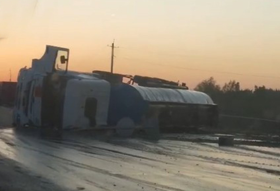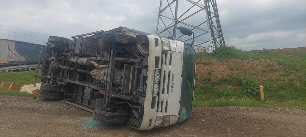 Ağdaşda yük maşını yoldan çıxaraq aşıb, xəsarət alanlar var