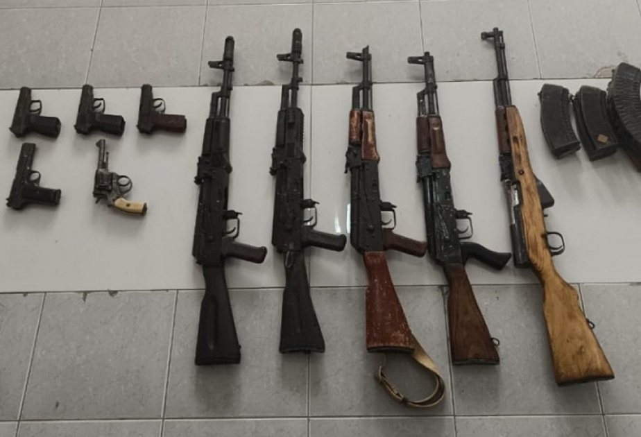 Polis əməkdaşları 5 avtomat silahı, 1 qumbara aşkar edərək götürüblər