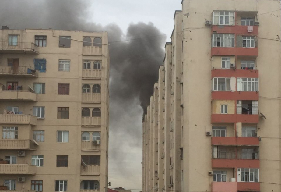 Saray qəsəbəsində çoxmərtəbəli binada yanğın baş verib