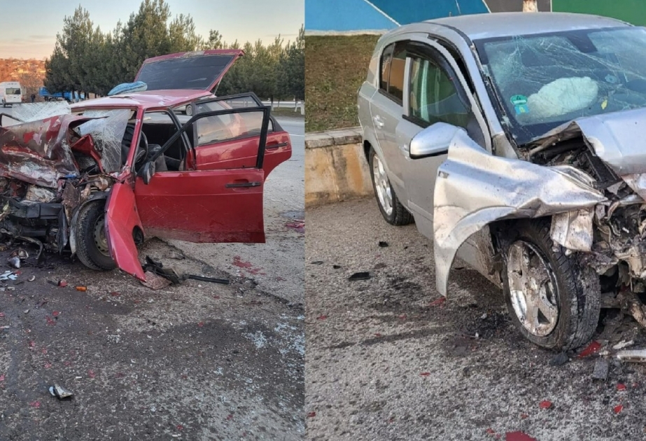 Yevlaxda iki avtomobil toqquşub, xəsarət alanlar var