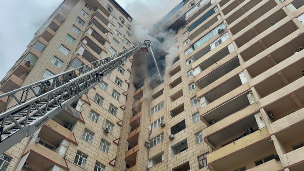 Xətai rayonunda çoxmərtəbəli yaşayış binasında baş verən yanğın söndürülüb