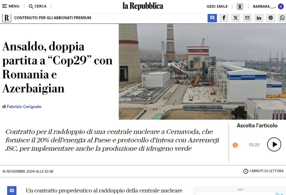 Azərbaycan Avropaya qaz satışını 8,6 faiz artırıb