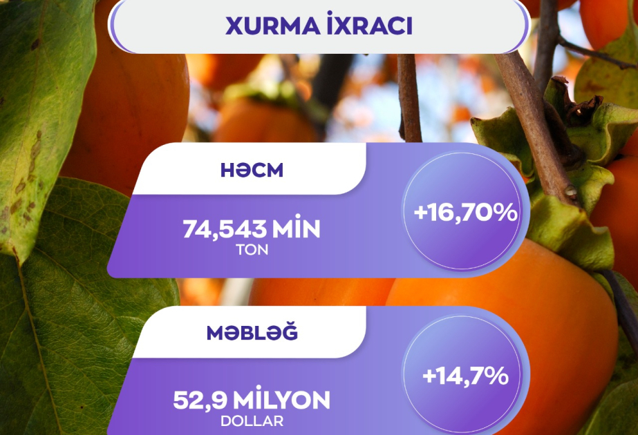 Azərbaycandan xarici bazarlara xurma ixracı 16,7 faiz artıb