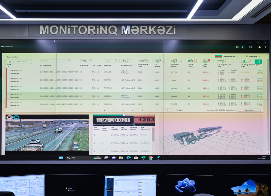 Daxili İşlər Nazirliyinin Baş Dövlət Yol Polisi İdarəsinin İnformasiya Sisteminə inteqrasiya olunmuş mərkəz, iriqabaritli nəqliyyat vasitələrinin qanun pozuntularını aşkar etməyə imkan verir. Media nümayəndələri elektron tərəzilərin texniki göstəriciləri ilə tanış olmaq üçün Bakı-Ələt-Qazax-Gürcüstan avtomobil yolunun 47,9-cu kilometrindəki məntəqəyə səfər ediblər.