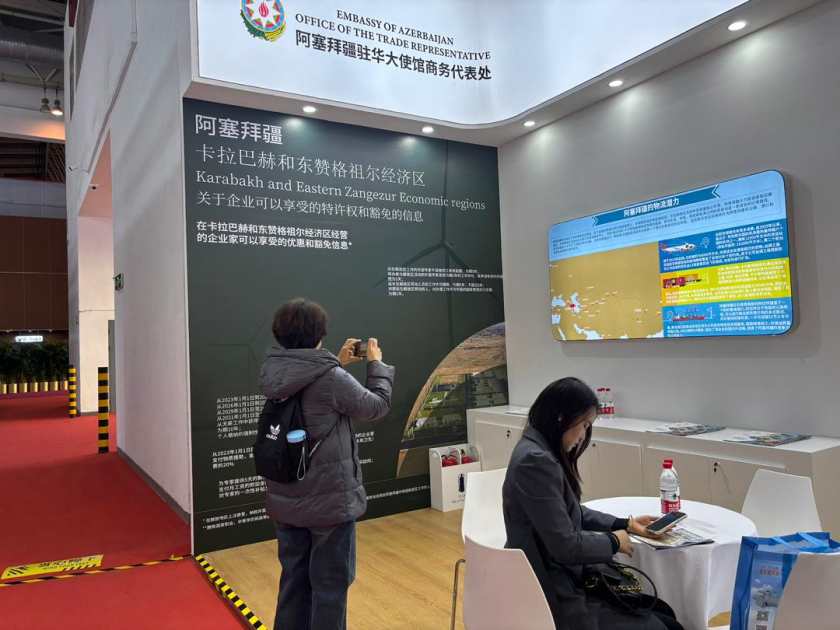 Azərbaycanın İqtisadiyyat Nazirliyinin dəstəyi, ölkəmizin Çindəki ticarət nümayəndəliyinin təşkilatçılığı ilə sərginin ekspozisiya sahəsində Azərbaycan stendi fəaliyyət göstərir. Stenddə ölkəmizin əlverişli biznes sərmayə mühiti, sənaye parklarının və iqtisadi zonaların, o cümlədən Ələt Azad İqtisadi Zonasında iş adamlarına və investorlara təklif olunan imtiyazlar, Qarabağ və Şərqi Zəngəzur rayonlarının iqtisadi potensialı, ölkəmizin yaşıl keçid imkanları təqdim olunur.
