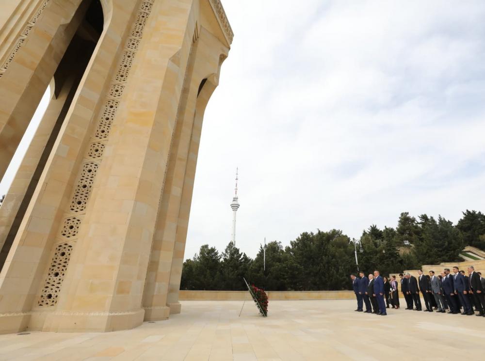 Sonra sahibkarlar Şəhidlər Xiyabanında Azərbaycanın suverenliyi və ərazi bütövlüyü uğrunda canlarından keçmiş qəhrəman Vətən övladlarının xatirəsini yad edib, məzarları önünə güllər düzüb, “Əbədi Məşəl” kompleksinə əklil qoyublar.