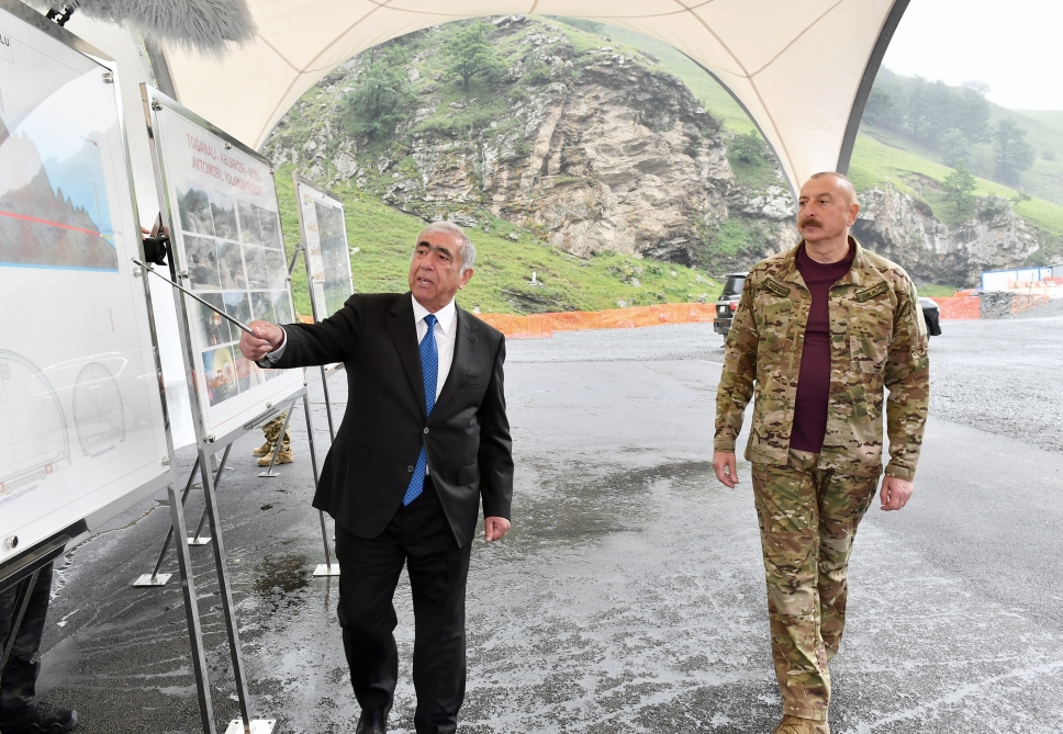 Как сообщает АЗЕРТАДЖ, вначале глава государства ознакомился со строительством двух тоннелей, сооружаемых на 13-м километре автомобильной дороги Тоганалы-Кяльбаджар.