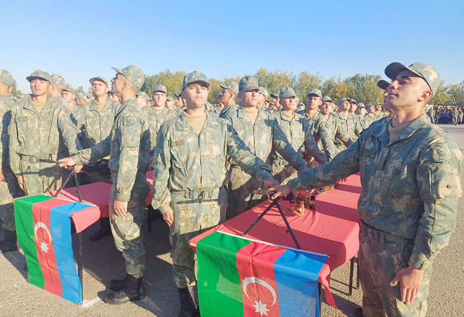 Gənc əsgərlər öz növbəsində Vətənə, dövlətə və Ali Baş Komandana, Hərbi anda sadiq olacaqlarına, nümunəvi, nizam-intizamlı xidmət edəcəklərinə, silah və texnikanın sirlərini dərindən öyrənəcəklərinə, döyüş qabiliyyətlərini daim artıracaqlarına, komandir-rəis heyətinin əmr və sərəncamlarını dəqiq və vaxtında yerinə yetirəcəklərinə söz veriblər.