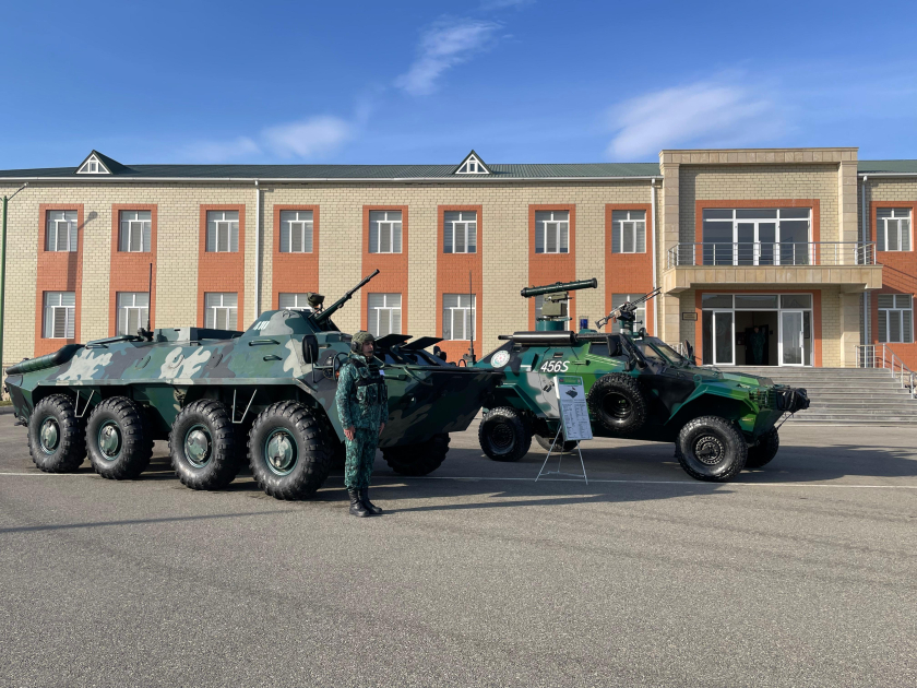 Burada “Qazax” əlahiddə sərhəd diviziyasının yüksəkhazırlıqlı şəxsi heyəti silah arsenalı, döyüş texnikaları, yüksəkkeçidli nəqliyyat vasitələri, zirehli və avtomobil texnikası nümayiş etdirilib.