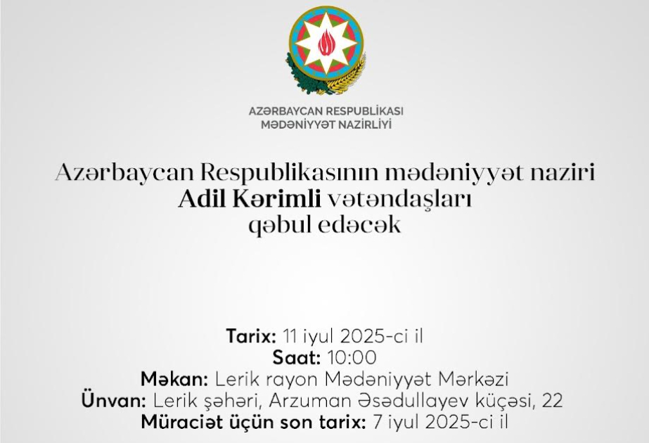 Mədəniyyət naziri Lerikdə vətəndaşların müraciətini dinləyəcək