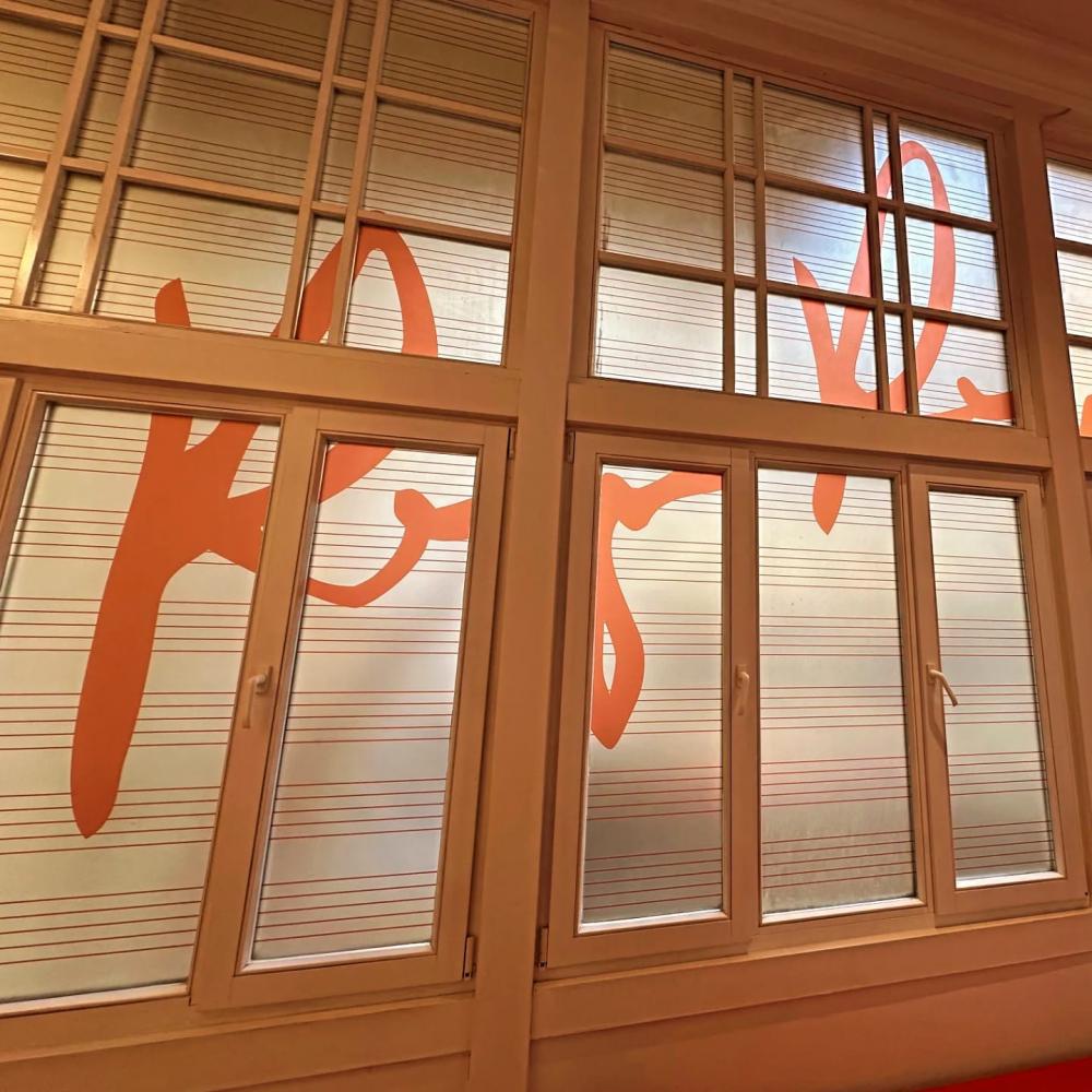 Qara Qarayev demək olar ki, bütün janrlarda əsərlər bəstələyib. Avstriyalı dizaynerlər, həmin əsərlər haqqında məlumatlar qeyd olunan divarları ayrı-ayrı rənglərə boyayıblar. Dram janrı boz rəngində, Opera və Balet üçün musiqi qırmızı rəngdə, kamera və simfonik musiqi qəhvəyi rəngdə və s. Bəstəkarın sevdiyi rəng qırmızı olduğu üçün divar çalarlarında qırmızı rəngdən daha çox istifadə olunub. Buranın tərtibat-dizayn işlərini "Partner Culture+Projects" (Hors Kampman) şirkəti həyata keçirib.
