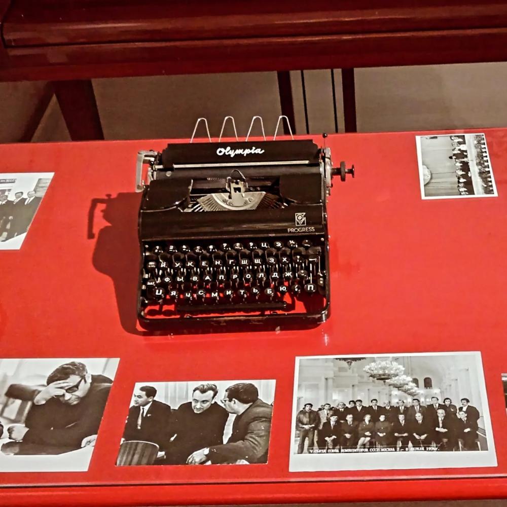 Otaqda müəllifin orijinal əlyazmaları xüsusi tərtib olunmuş rəflərdə saxlanılır. Rəflərin birində bəstəkarın 1941-1945-ci illər Vətən müharibəsinə həsr olunmuş "Vətən" operasının əlyazmasını görürəm. O, bu əsərə görə "Stalin" mükafatına da layiq görülüb. "Yeddi gözəl" isə onun ilk baletidir. İkinci balet 1958-ci ildə yazdığı və 1967-ci ildə "Lenin" mükafatına layiq görüldüyü "İldırımlı Yollarla" baletidir. Muzeyin divarlarında Qarayevin ailəsinin şəkilləri yerləşdirilib.