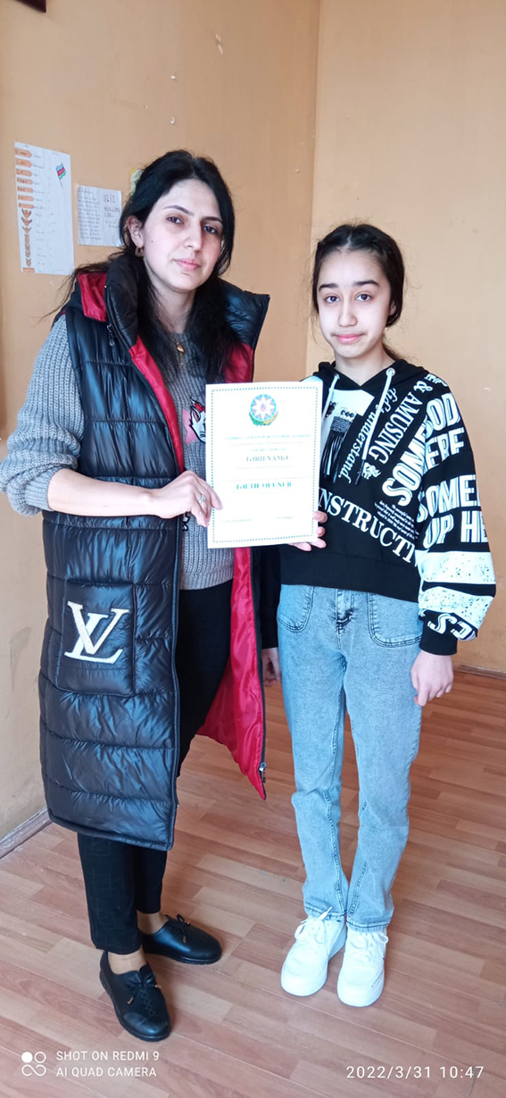 - Mən şagirdlərimi öz övladım kimi görürəm. Çox şükür, mən onları çox istədiyim kimi, onlar da məni çox istəyir. Ümumiyyətlə, bizim məktəbimiz ən qabaqcıl məktəblərdəndir. Həmişə təhsildə yüksək nailiyyətlər əldə etmişik. Məsələn, ötən tədris ilində 19 şagirdimiz ali məktəbə qəbul olub. Onlardan 2 nəfəri 600 - dən çox bal toplayıb. 5 məzunumuz isə təhsil almaq üçün Türkiyəyə gedib.