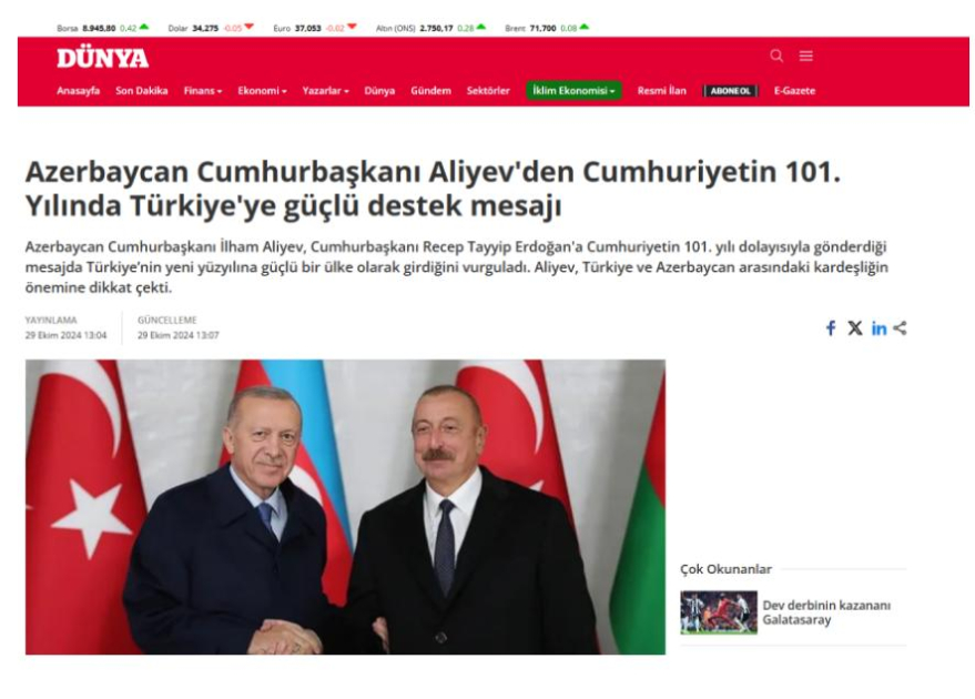 Bakıda Türkiyənin milli bayramı münasibətilə rəsmi qəbul təşkil edilib