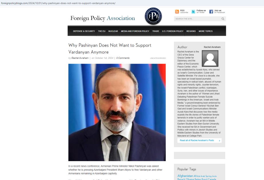ABŞ mətbuatı: Paşinyan niyə daha Vardanyanı dəstəkləmək istəmir?