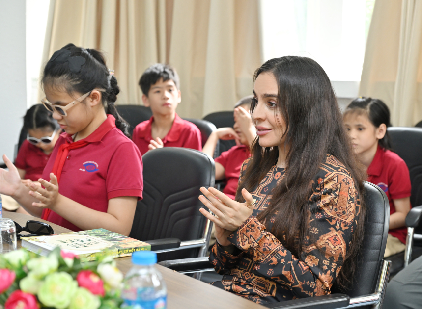 Leyla Əliyeva Hanoyda görmə qabiliyyəti məhdud şəxslər üçün məktəbdə olub