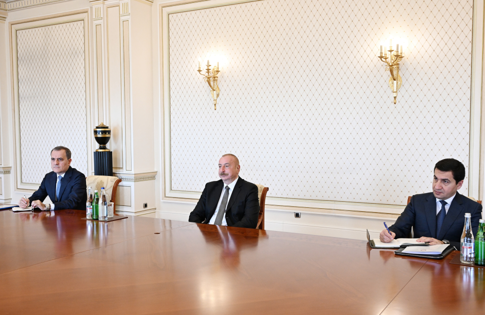 AZƏRTAC xəbər verir ki, qonaqları salamlayan Prezident İlham Əliyev dedi: Xoş gəlmisiniz. Sizi görmək xoşdur. Sizə Azərbaycanda yaxşı vaxt keçirməyi arzu edirəm. Burada qonaqlarımızın iqlimlə bağlı mühüm məsələləri müzakirə etmələrini görmək çox xoşdur. Sizi konfransa dəvət etmək istəyirəm. Əlbəttə, ümidvaram ki, siz konfransın açılış mərasimində olacaqsınız. Beləliklə, bu, ikitərəfli gündəliyimizi, bizim birlikdə necə çalışa biləcəyimizi və bu ciddi iqlim çağırışı ilə bağlı sizi necə dəstəkləyə biləcəyimizi müzakirə etmək üçün yaxşı fürsətdir. Xoş gəlmisiniz. Bilirəm ki, Azərbaycanda geniş proqramınız və çoxlu görüşləriniz var. Əminəm ki, yaxşı təəssüratlarla geri dönəcəksiniz.