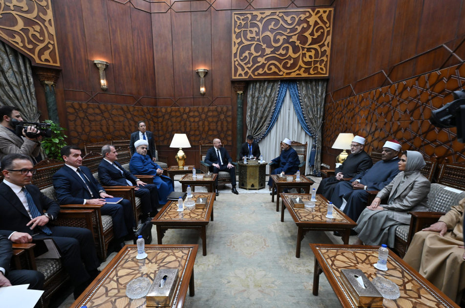 AZƏRTAC xəbər verir ki, görüşdə Prezident İlham Əliyev Əl-Əzhərdə ikinci dəfə olduğunu xatırladı, Misirə rəsmi səfəri çərçivəsində yenidən burada olmağından və Əl-Əzhəri Şərifin şeyxi, böyük imam Əhməd Məhəmməd Əhməd Əl Tayyib ilə görüşündən məmnunluğunu bildirdi.