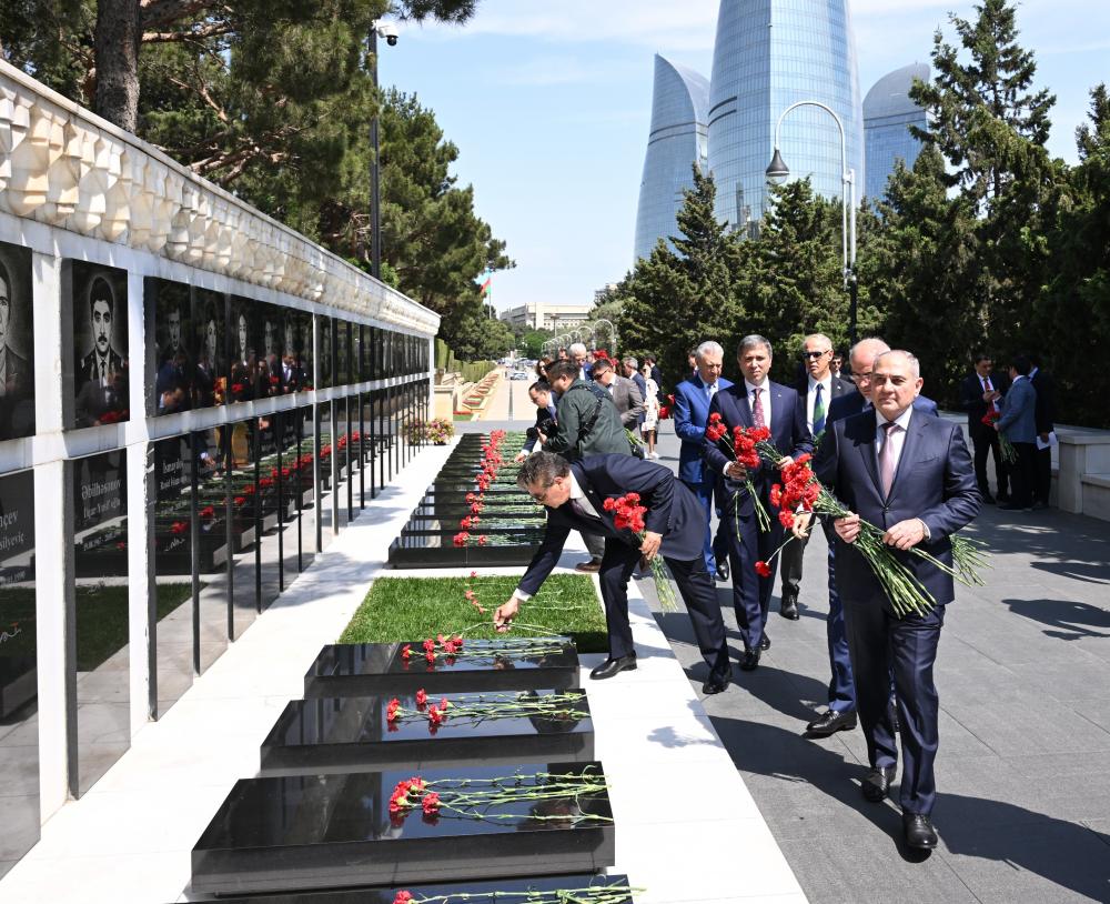 Sonra konfrans iştirakçıları Şəhidlər Xiyabanını ziyarət ediblər. Azərbaycanın azadlığı və müstəqilliyi uğrunda mübarizədə canlarını qurban vermiş qəhrəman Vətən övladlarının xatirəsi ehtiramla yad edilib, məzarları üzərinə tər güllər düzülüb, “Əbədi məşəl” abidəsinin önünə əklil qoyulub.